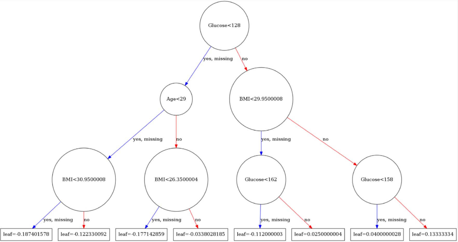 위 모델에 대한 테스트 데이터의 정확도는 84.42%입니다. 이 모델은 의사 결정 트리의 깊이가 4이기 때문에 더욱 많은 피처를 사용해 당뇨병을 진단할 수 있을 것입니다.