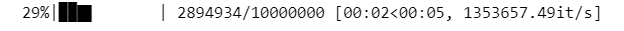 언제 끝나는지 모르는 경우도 생깁니다. 그럴때 tqdm를 사용하여 현재 진행상황을 확인할 수 있습니다.